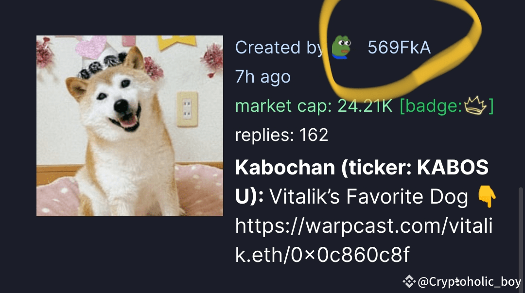 Hello everyone myself Cryptoholic_boy and today I bring another project named $KABOSU. Narrative is good. Vitalik mentions about KABOSU many time in his tweets and posts. Also the deployer of $KABOSU is same as the deployer of $NEIRO. Neiro is at 100 million MCAP now.