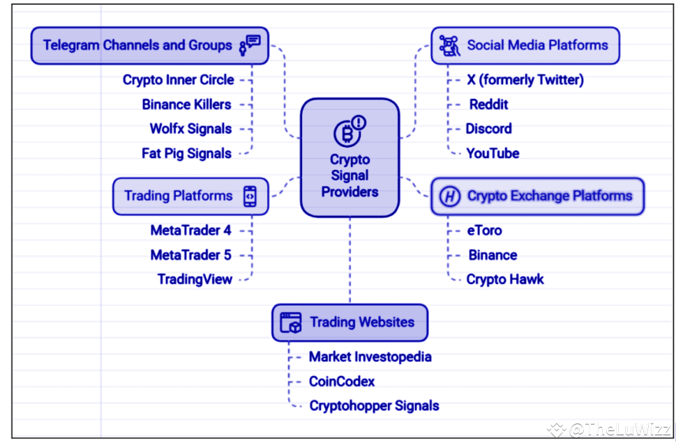 Trading signals recommend when to buy or sell at specific prices, often shared through platforms like Telegram or Discord, and include details like the cryptocurrency name, entry price, and profit targets.