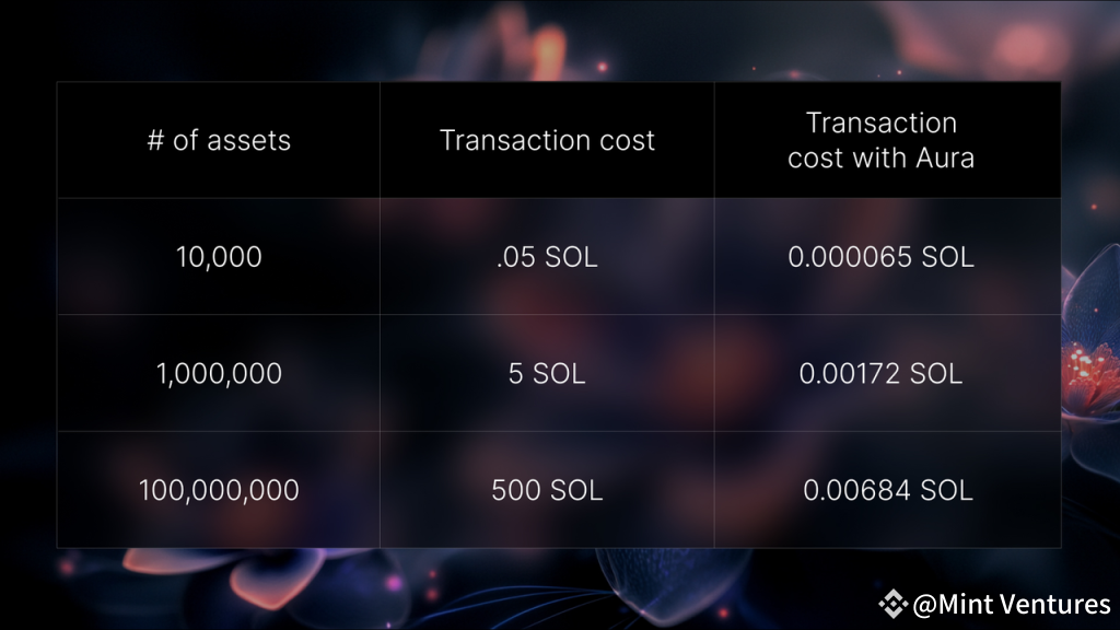 In addition, in September, the Metaplex Foundation officially announced the launch of Metaplex Aura—a decentralized indexing and data availability network designed to serve Solana and SVM. With the indexing and data availability services provided by Aura, Solana and other blockchain projects adopting the SVM standard can read asset data more efficiently and support batch operations at significantly lower costs, reducing operational expenses by over 99%. See the image below for reference: