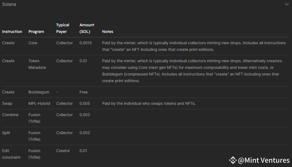 Specifically, the pricing standards for Metaplex’s products on Solana are as follows: