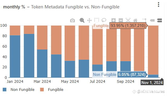 What’s even more noteworthy is that 94% of these assets are fungible tokens (FTs), while only 6% are NFTs. Back in January of this year, the split was 18.6% FTs versus 81.4% NFTs. This means that, In terms of business volume, Metaplex’s primary business has now shifted to fungible token services rather than NFT services. Moreover, a significant portion of these fungible tokens were minted as part of the ongoing Meme trend.