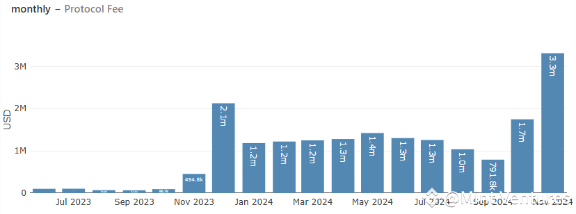 As of the time of writing (November 30, 2024), Metaplex’s monthly protocol revenue has reached an impressive $3.3 million, marking a new all-time high.
