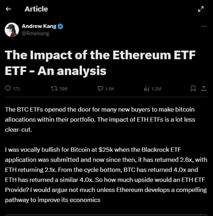 ✧ He also evaluated the upside for $BTC and $ETH in the near term