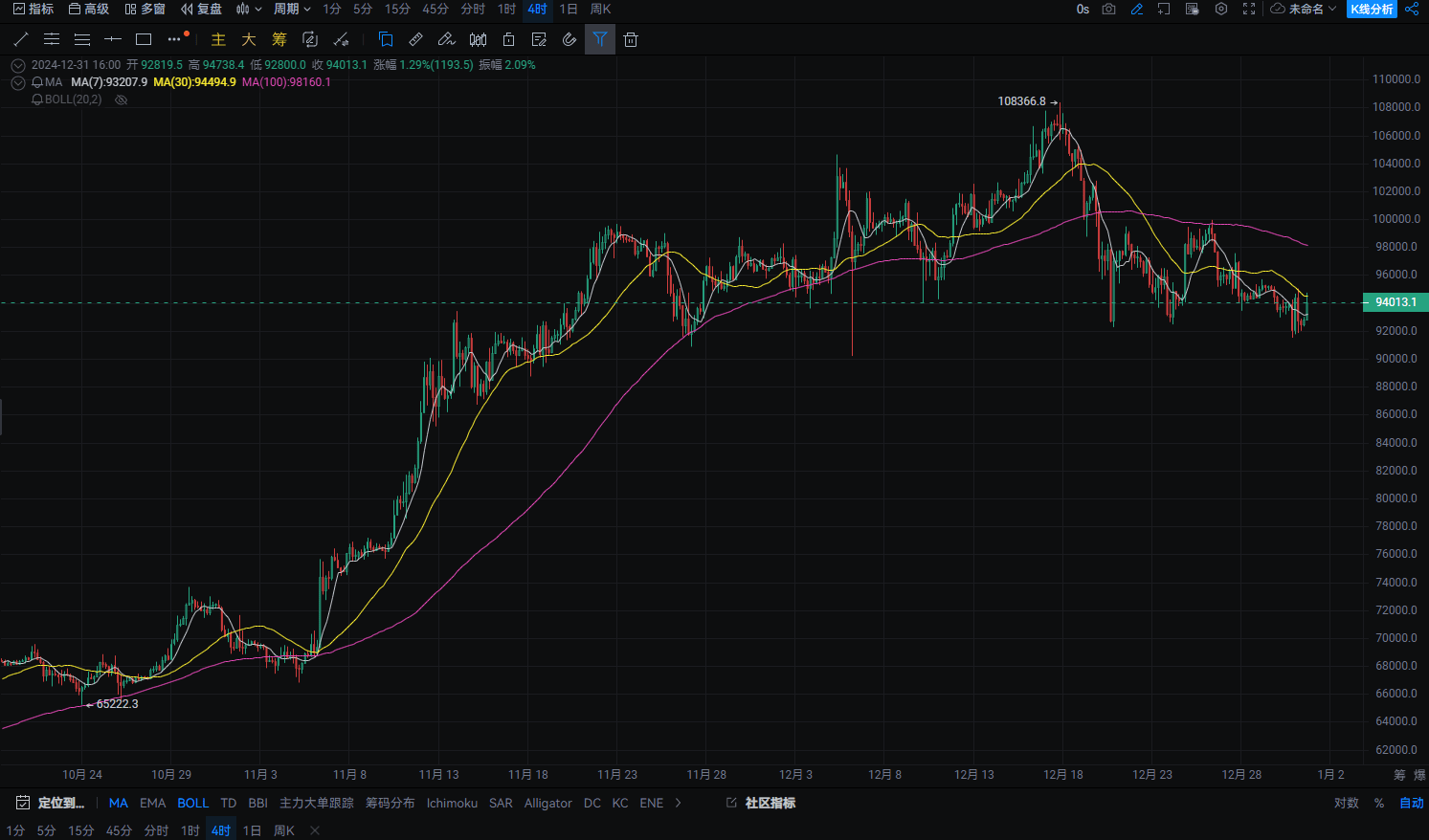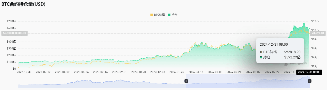 The heat map of Bitcoin's open interest (OI) provides important clues about price fluctuations. The Binance platform shows dense trading activity in the $95,250 and $94,450 regions. These price ranges not only played a critical role in the last week of December, becoming the focus of support and resistance, but also signified the market's consensus on these price levels.