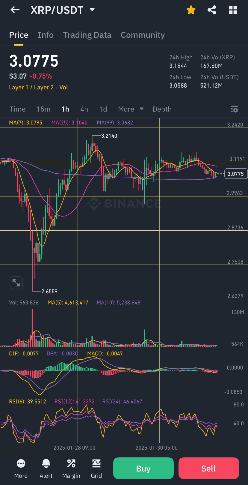 โข $XRP is presently priced at $3.076, experiencing a minor decline of - 0.75% over the past day. It dipped to a low of $3.05 but swiftly bounced back to $3.07 and then to $3.08. If #XRPArmy can maintain stability above the $3.09 to $3.10 range, thereโs potential for it to climb to $3.20 or more.๐