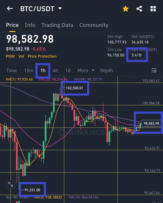 โข Bitcoin #BTCโ๏ธ is on a slow but steady upward trajectory! After hitting a low of $91,231 on February 3rd, BTC reboundedimpressively to $102,500, though it has since slipped a bit to its current value of $98,582, marking a slight decline of 0.65% in the last day. Analyzing the technical cycles, Bitcoin has recovered and is gearing up to reach its next all-time high.๐