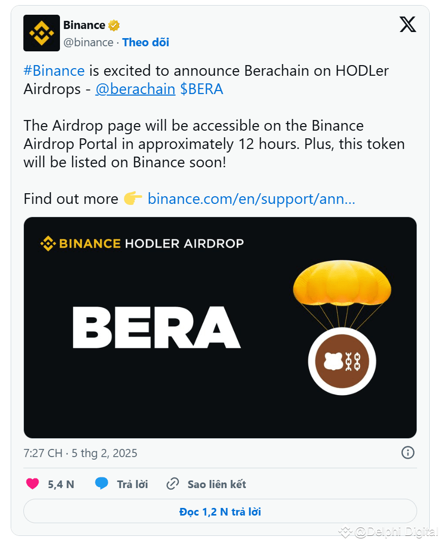 Specifically, on February 5, the development team announced a plan to airdrop 632 million BERA tokens for the chain's initial supporters such as Baritio users, NFT owners, community members, and dApp users.
