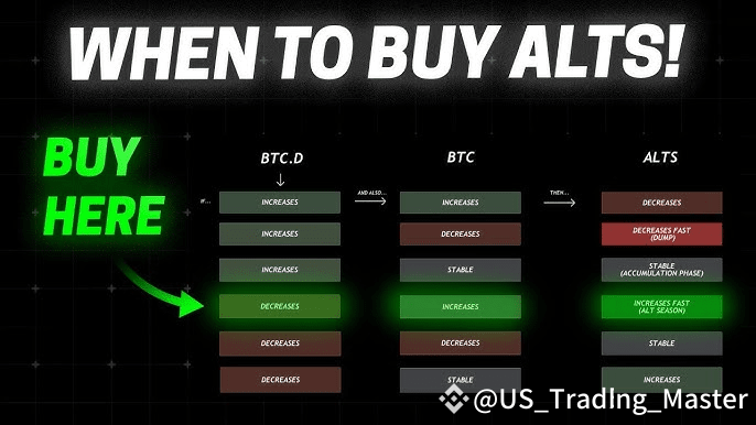 🔻 BTC Dominance Falls: Altcoins explode in value (altseason begins).