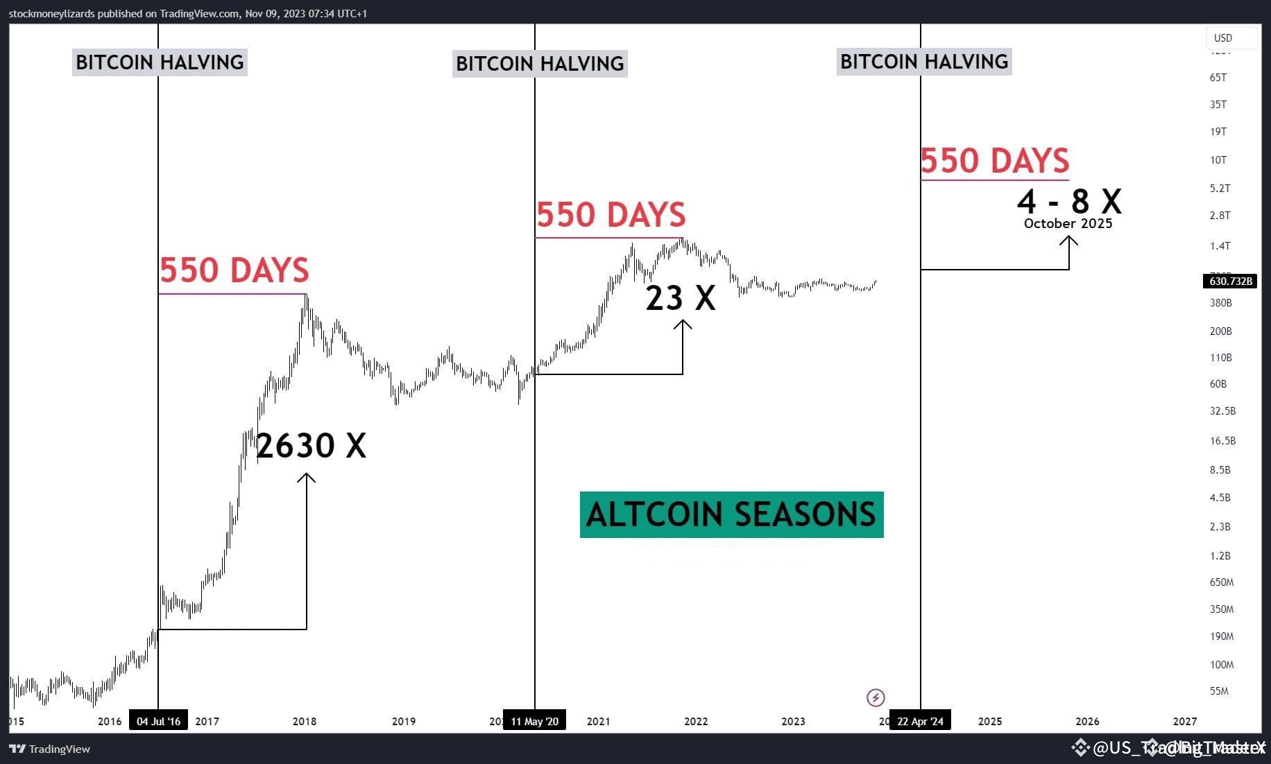 Looking at past bull markets, altcoin seasons follow a clear pattern after Bitcoin halvings:
