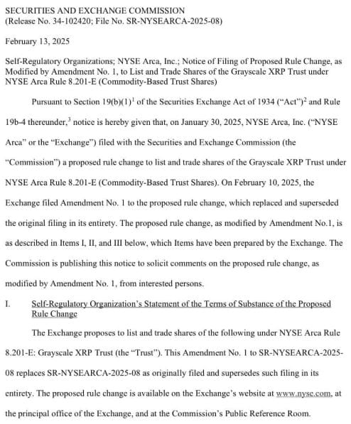 → Furthermore, on February 12th, Foresight News by Binance and Cointelegraph both highlighted that the U.S. Securities and Exchange Commission (SEC) is likely to approve Grayscale's XRP ETF 19b-4 filing by February 13th. This could be a crucial milestone in the journey toward ETF approval.👍