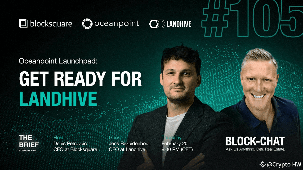 Projects like @blocksquare_io and Landhive are leading this revolution, bringing real-world assets (RWA) onto the blockchain. To learn more, tune into BLOCK-CHAT #105 at 8 PM CET and discover how $BST is shaping the future of real estate