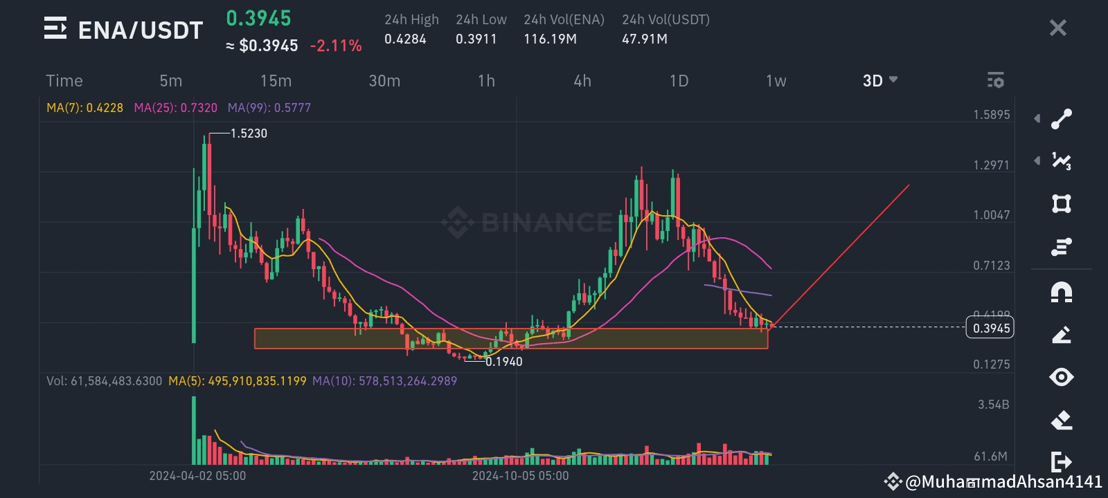 1. Technical Analysis and Price Targets: Analysts have observed bullish patterns in ENA's price movements. For instance, a breakout above $0.9880 could confirm bullish momentum, potentially pushing the price toward $1.0200. Conversely, if the price falls below $0.9850, a correction toward $0.9600 may occur before a potential rebound.