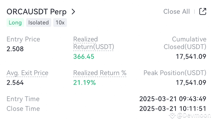 I entered a long position on $ORCA Perp at $2.508, using leverage. My strategy was solid, and the trade started going my way. Not long after, I was sitting on a $550 profit.