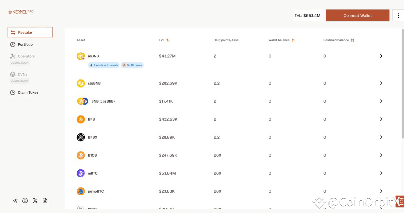 Support a variety of liquidity tokens, such as asBNB, slisBNB, etc., especially asBNB not only enjoys an APY of up to 38.17%, but also obtains additional Kernel airdrop points.