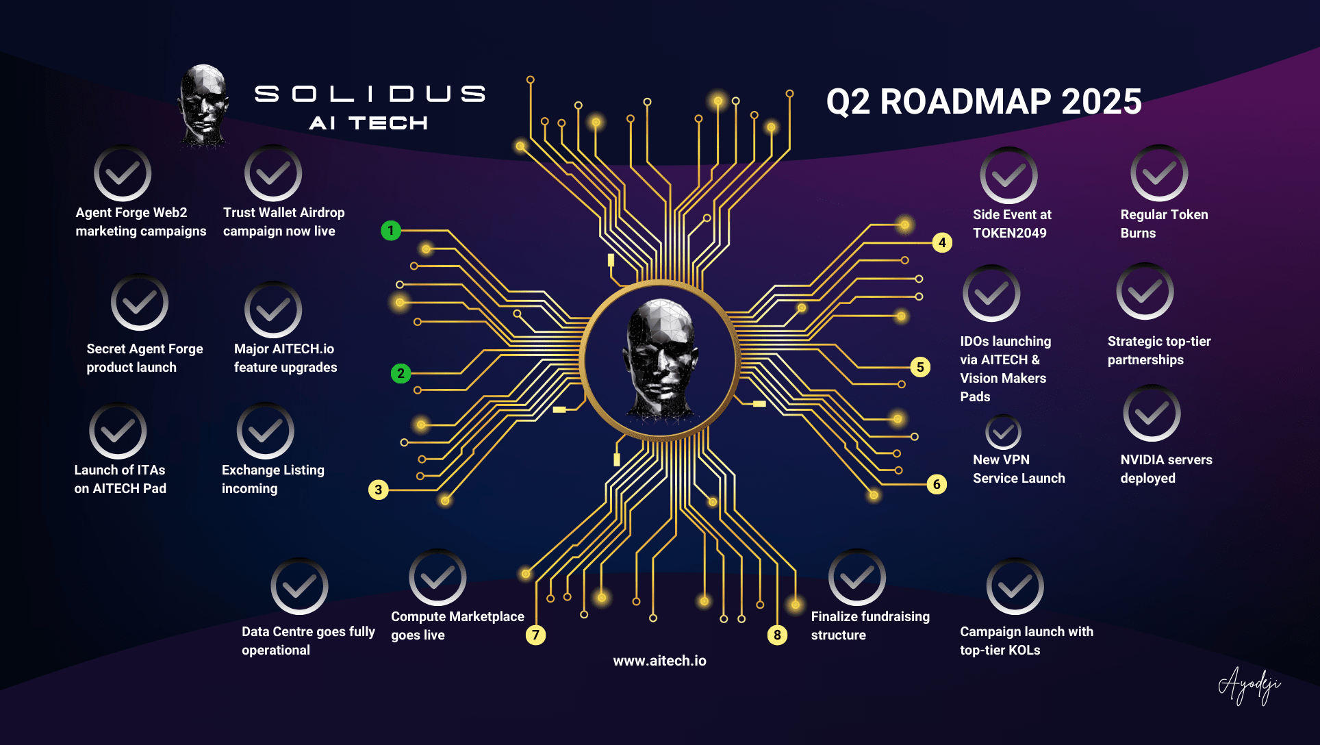 Solidus #AITECH has unveiled its Q2 2025 roadmap, and it marks a pivotal phase in the project’s evolution. With a strategic focus on expanding infrastructure, product rollouts, and partnerships, this roadmap not only positions Solidus as a leader in decentralized AI but also signals major momentum for the broader AI x Web3 space.
