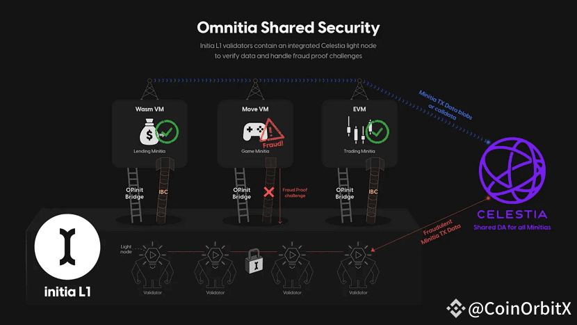 Omnitia Shared Security (OSS): Integrate Celestia light node into L1 validator to achieve scalable security without expanding the validator set.