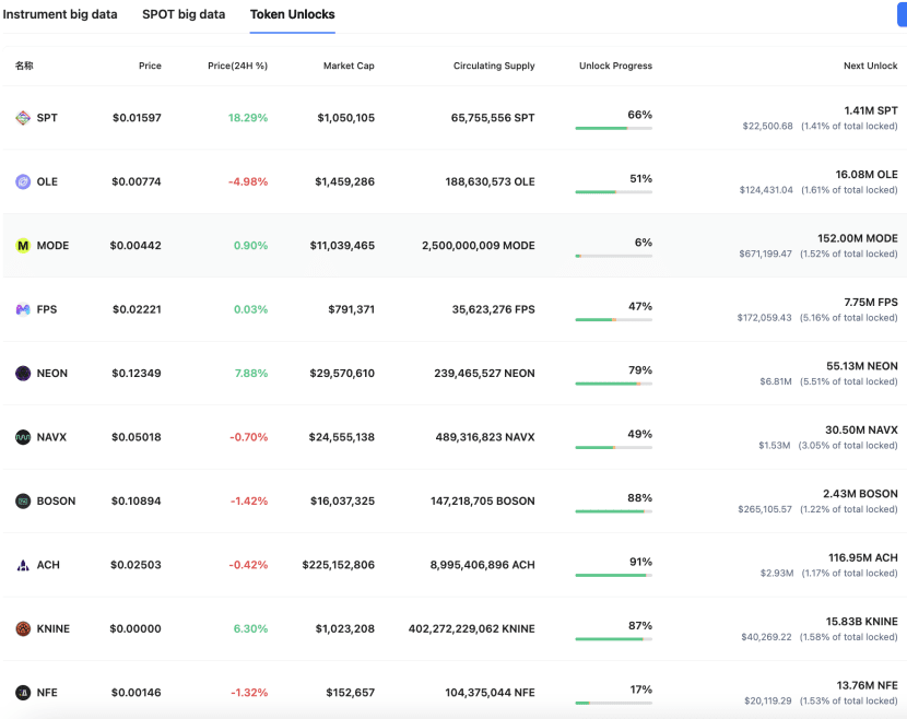 The unlocking situations of these projects may have varying degrees of impact on the related markets. The above is in UTC+8 time, and the data is from CoinAnk.