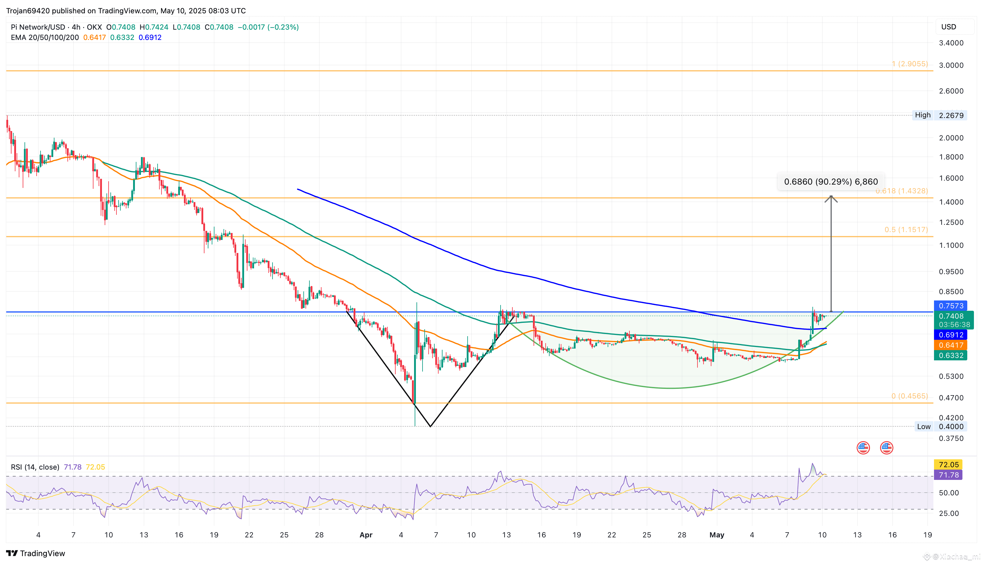 Pi Network (PI) price at $0.73 takes a small breather with a 2% intraday drop after two days of a 30% bull run.