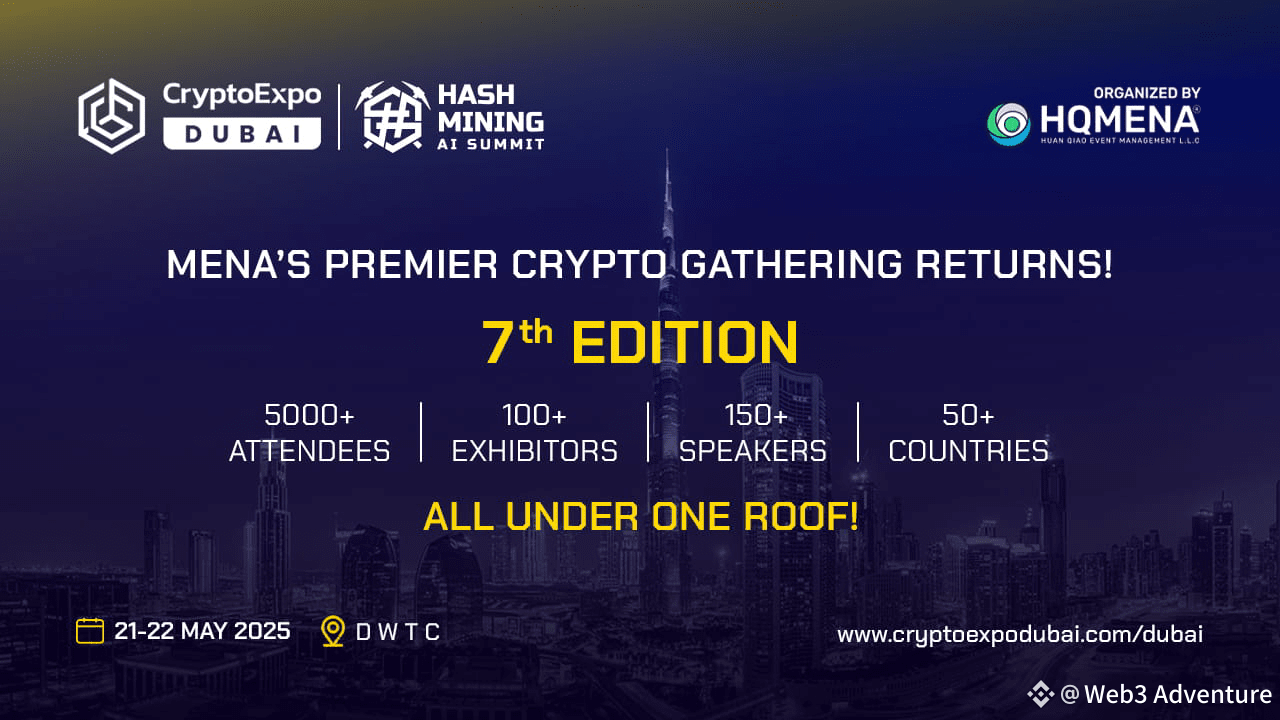 Dubai, UAE, 14 May 2025 — The global blockchain and cryptocurrency community is set to converge at the 7th edition of Crypto Expo Dubai on May 21–22, 2025, at the Zabeel Hall - 6, Dubai World Trade Centre. This premier event in the MENA region offers two dynamic days of innovation, networking, and insights into the evolving digital finance landscape.