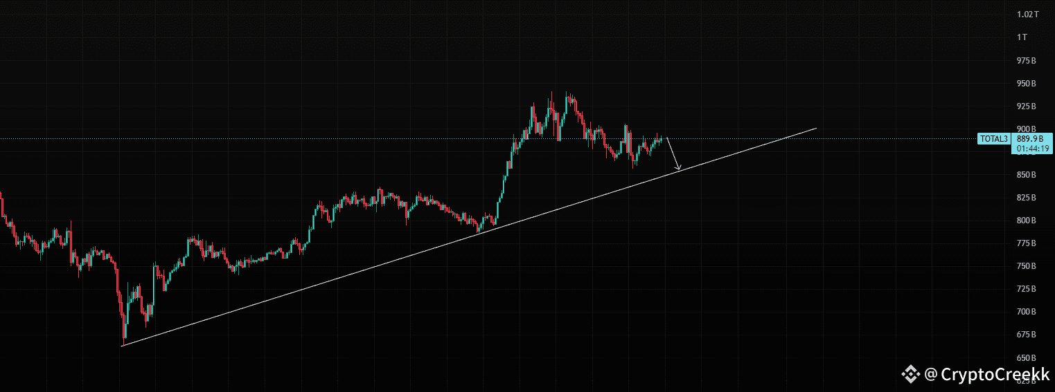 TOTAL3 will potentially bounce back after it is reached the trend support here.