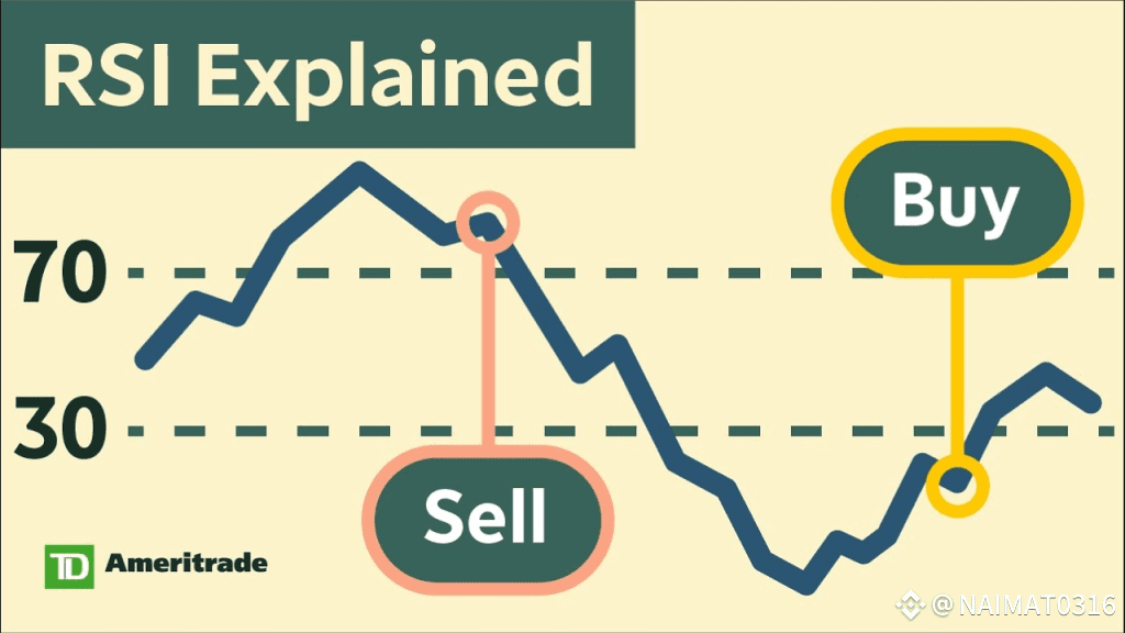• RSI < 30 = Oversold (price might go up)