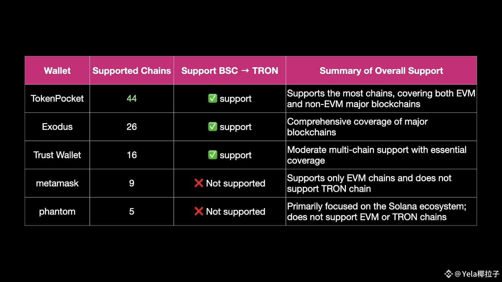 Here’s how the five wallets stack up in terms of supported chains and BSC ↔ TRON cross-chain compatibility: