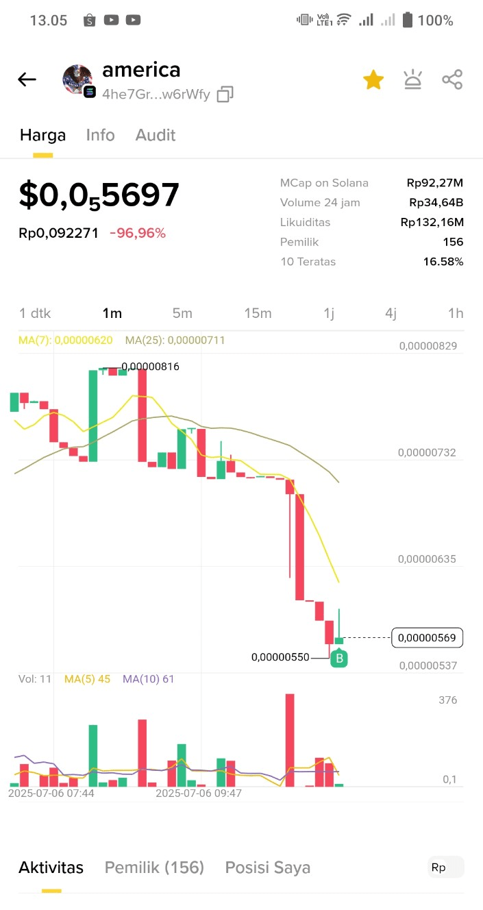 ❤️Bob: (Scratching his head, shocked) Oh my! The trading volume is only Rp34 billion? Liquidity Rp132 million? There are only 156 owners?! This is not a coin, this is a family gathering that has fallen apart!