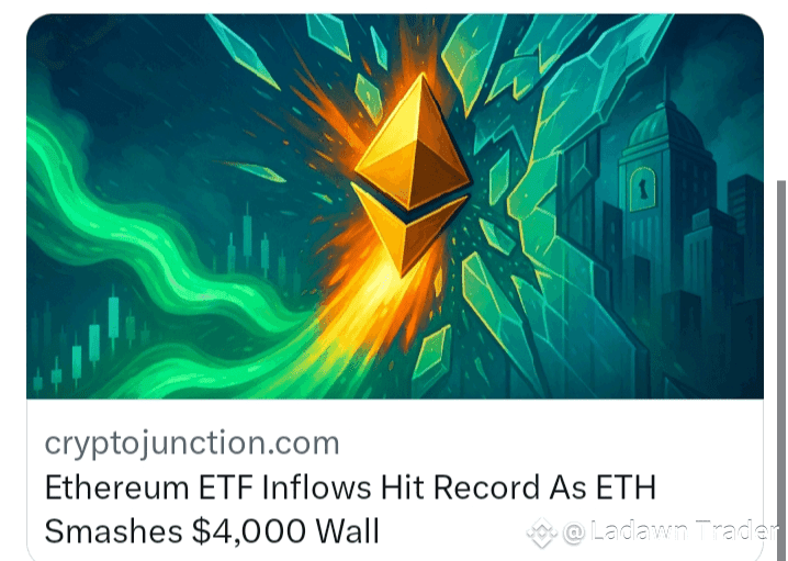Ethereum ETF inflows just hit an all-time high as ETH blasts past the $4K mark.
