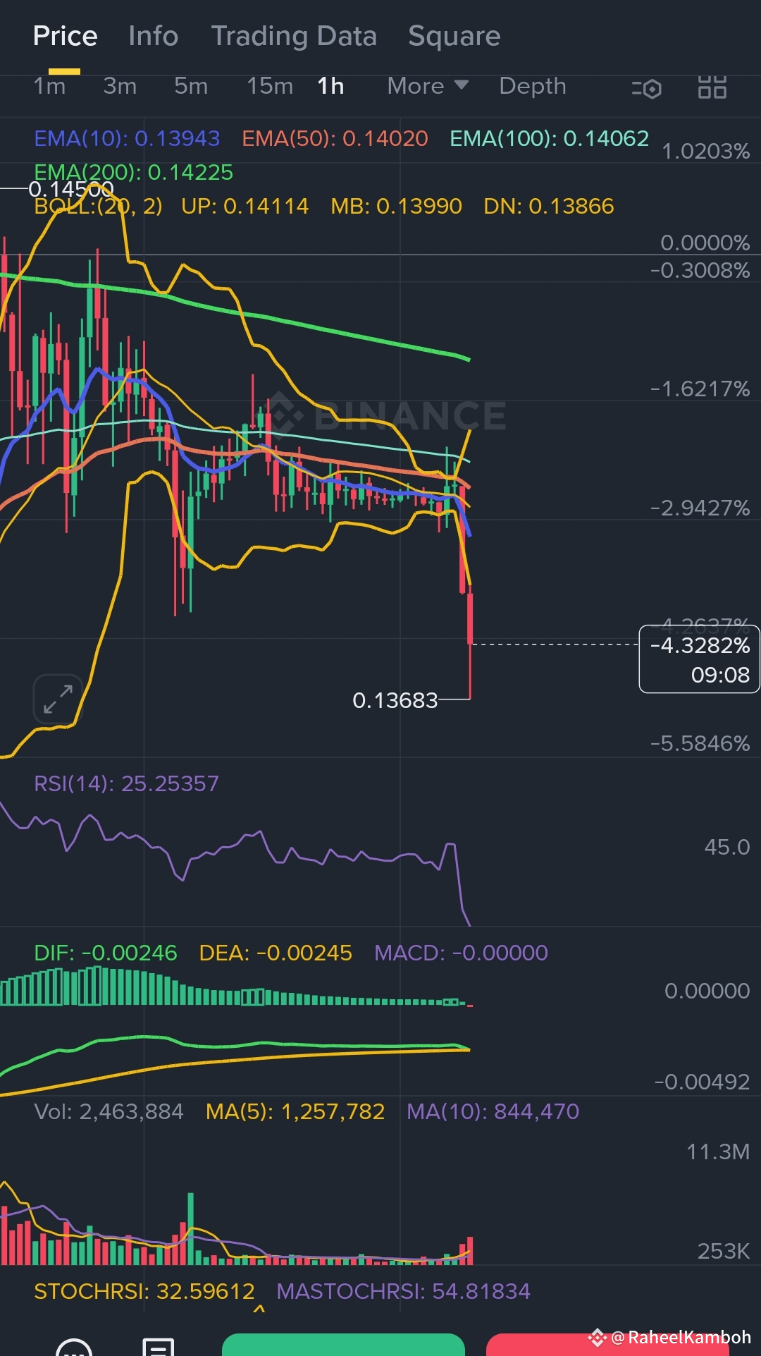 - EMA(10) = 0.13855 (Resistance Wall!)