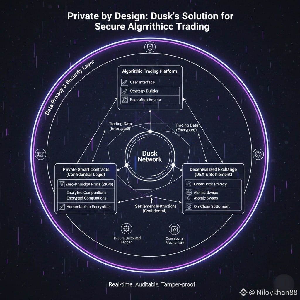 Algorithmic trading depends on speed, accuracy, and privacy. Strategies lose value the moment they are exposed, and data leaks can destroy competitive advantages. @duskfoundation addresses this challenge by delivering blockchain infrastructure built around privacy by default. Through advanced cryptography, Dusk ensures sensitive trading logic and transaction details remain confidential while still being verifiable on-chain.