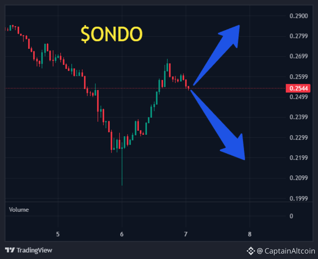 A fresh breakdown in structure has pushed ONDO closer to historical support, placing the asset at a decisive moment. Market watcher Altcoinpedia notes that ONDO trades near $0.2544, a zone that now serves as the anchor for any short term outlook.