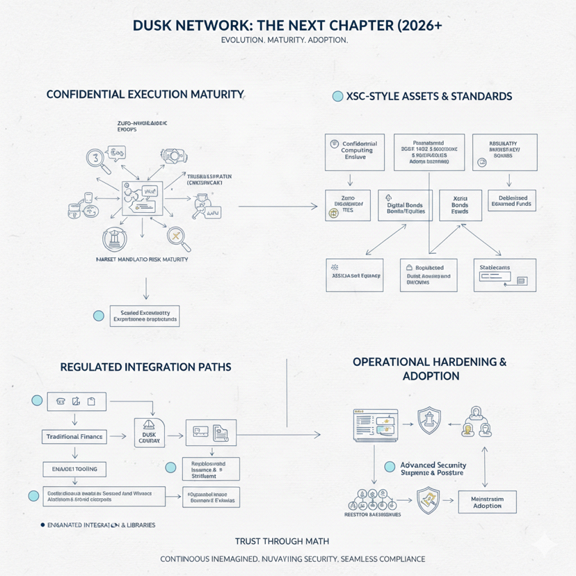 Looking forward, the most realistic next chapter is steady expansion of what the stack can support in practice, which means a more mature confidential execution environment, stronger standards and tooling around XSC style assets, deeper integration paths that make regulated issuance and settlement easier, and continued hardening of operational surfaces that matter in the real world, because the projects that win in this niche are the ones that keep shipping, keep tightening their security posture, and keep making the system easier to adopt without compromising the core design.
