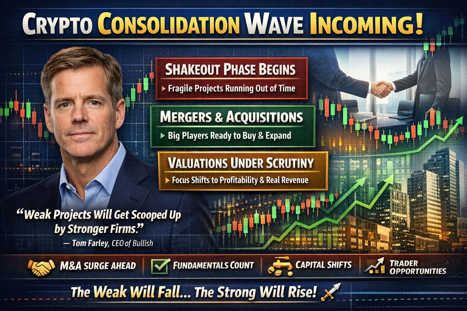 According to Tom Farley, CEO of Bullish, the market is finally doing what it should have done years ago: forcing weak projects out and rewarding real businesses.