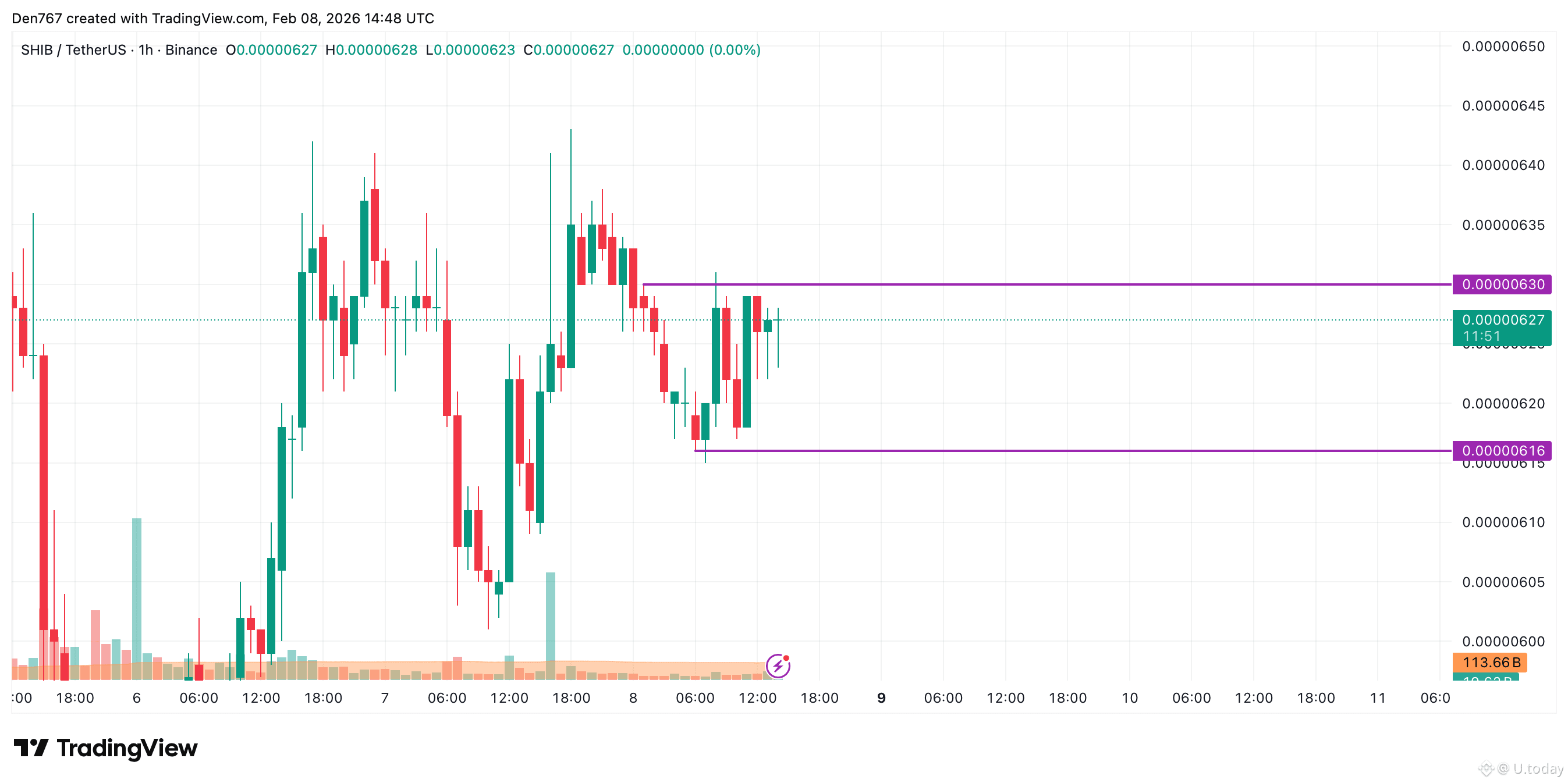 From the midterm point of view, the rate of SHIB has made a false breakout of the previous bar's low at $0.00000616. If the candle closes far from that mark, one can witness a bounce off to the $0.0000070-$0.0000080 range.