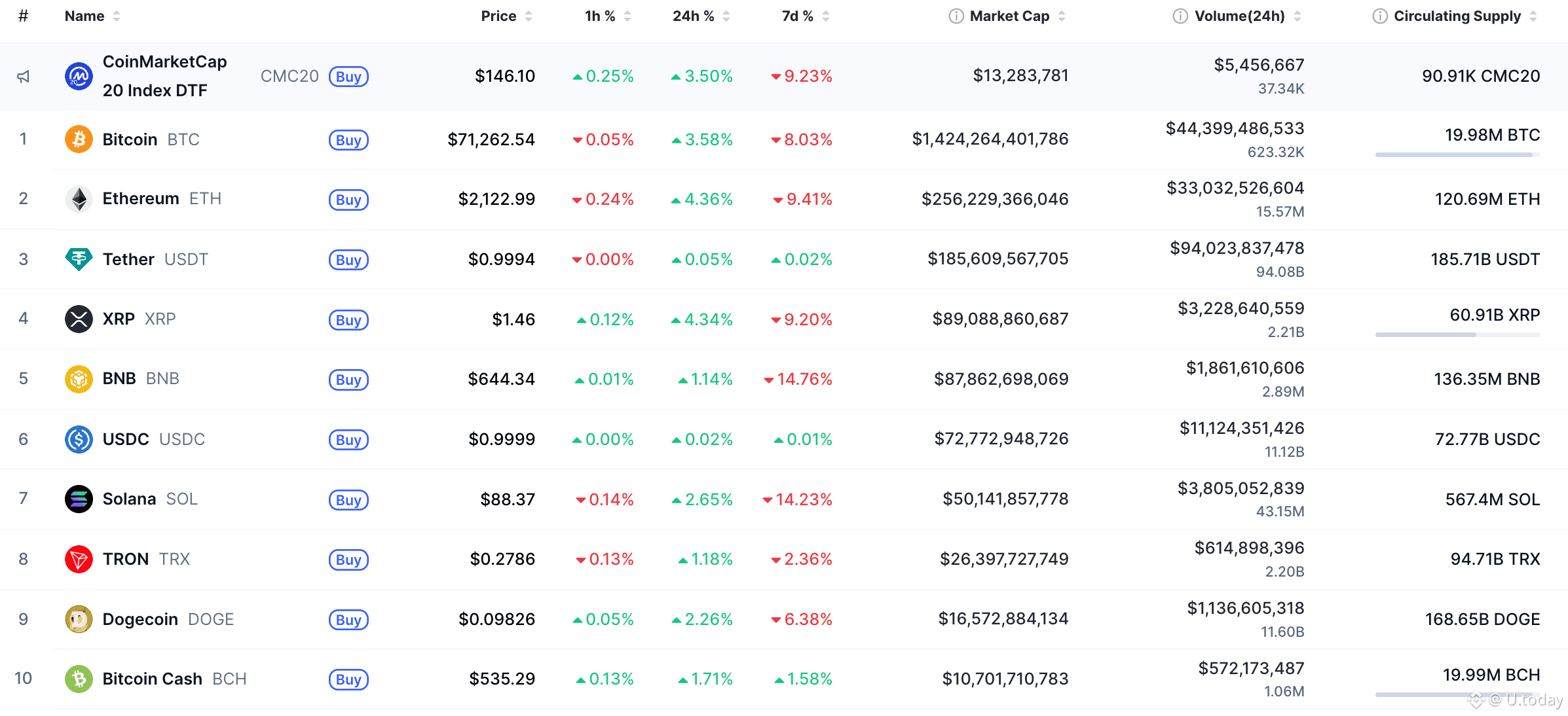 Bulls are back in the game at the end of the week, according to CoinMarketCap.