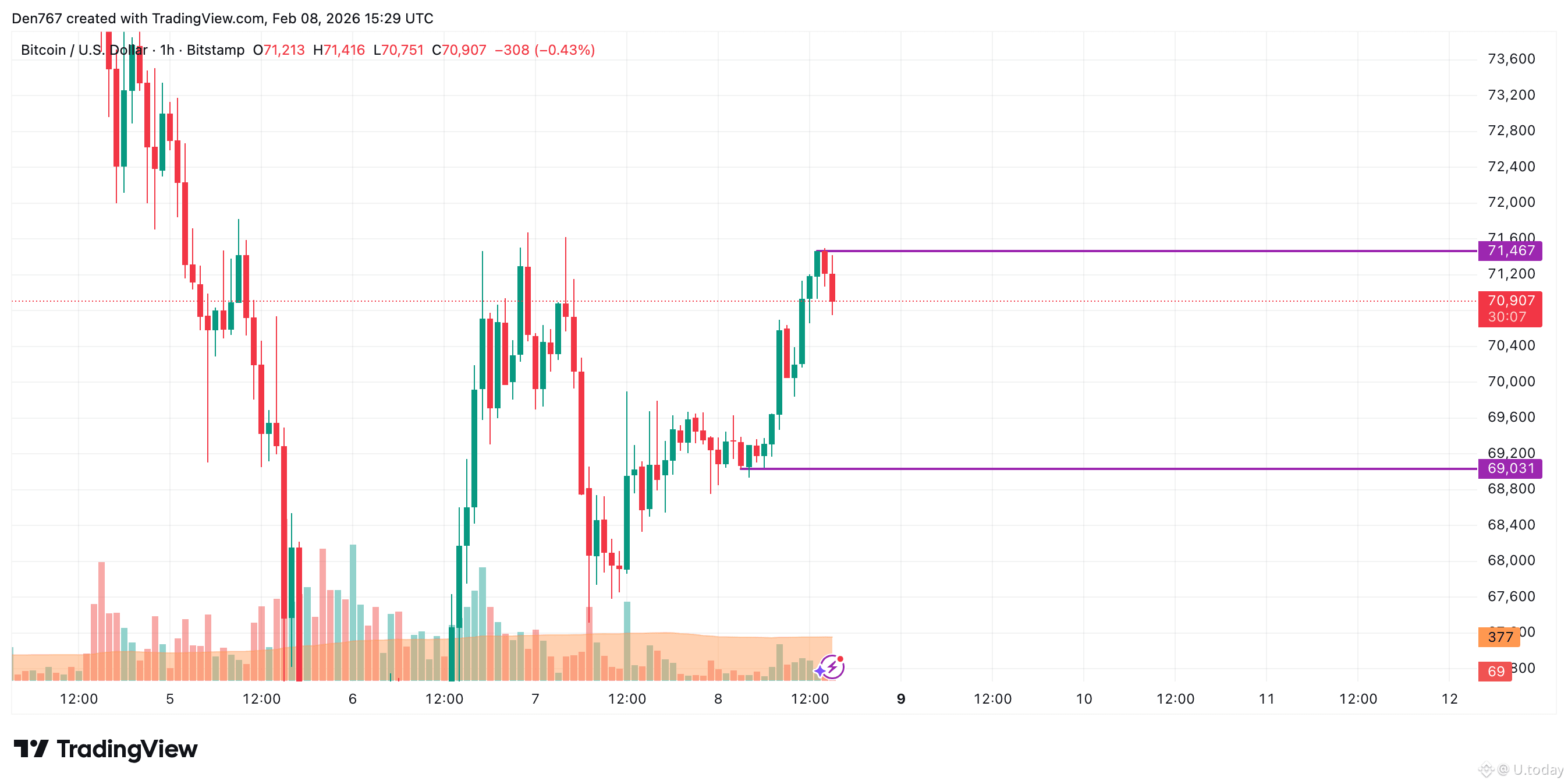 On the hourly chart, the rate of BTC might have found a local resistance at $71,467. However, one should focus on the daily bar's closure.