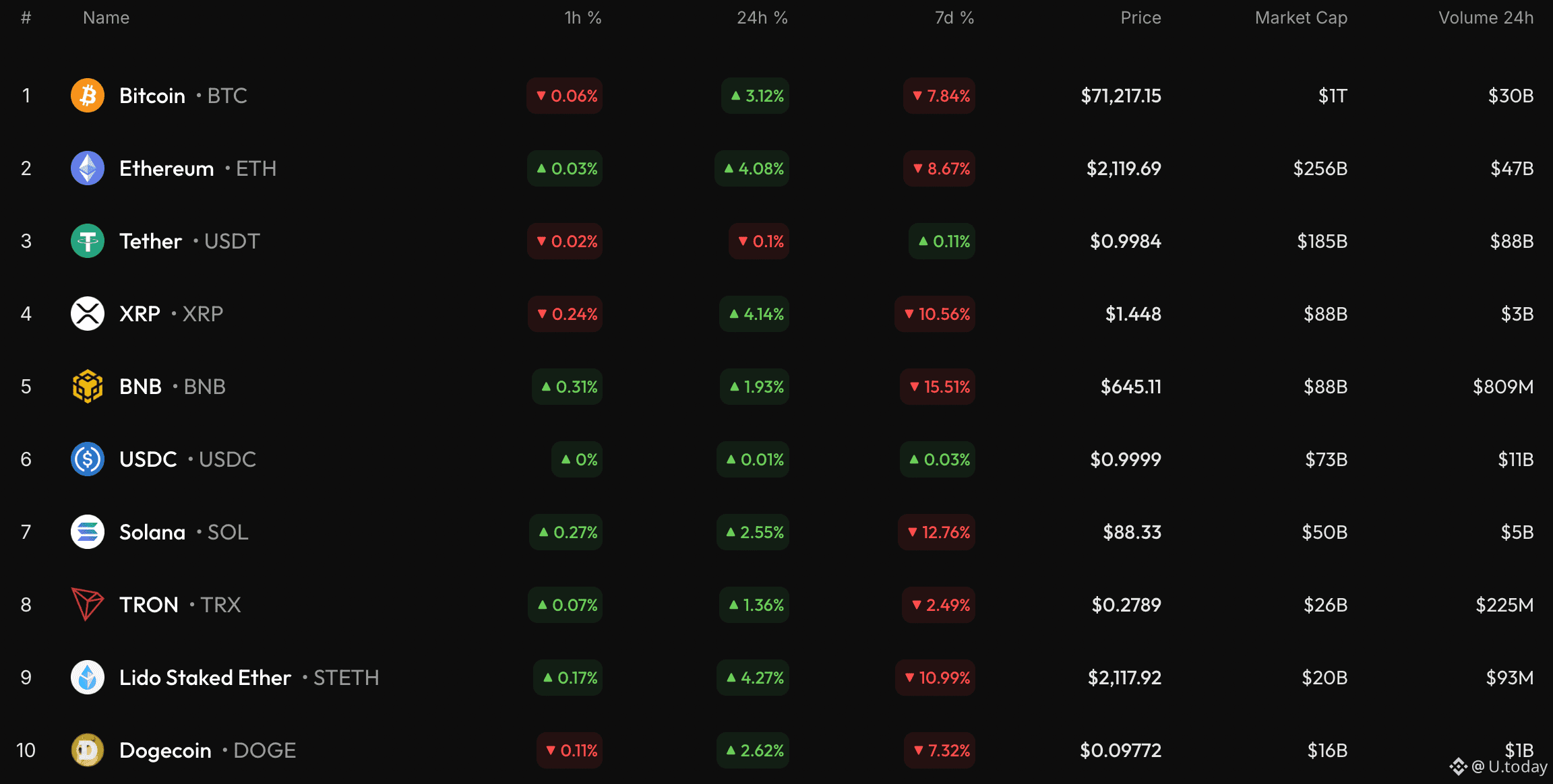 Bitcoin is trading at $71,036 at press time.