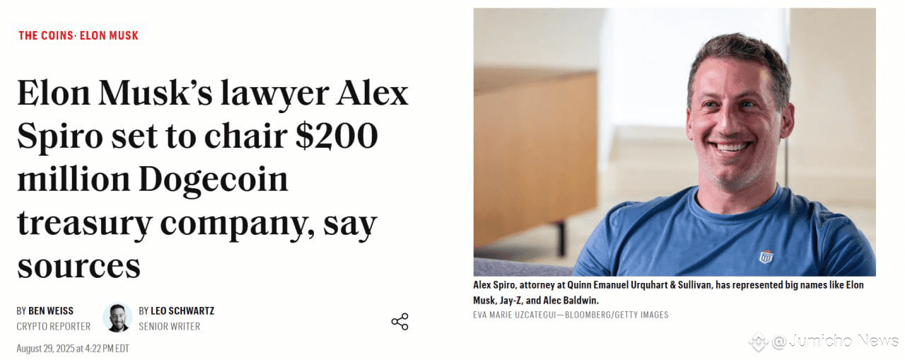 ๐จ Sources say Elon Muskโs lawyer, Alex Spiro, is set to lead a new $200M #Dogecoin treasury company called House of Doge ๐๐
