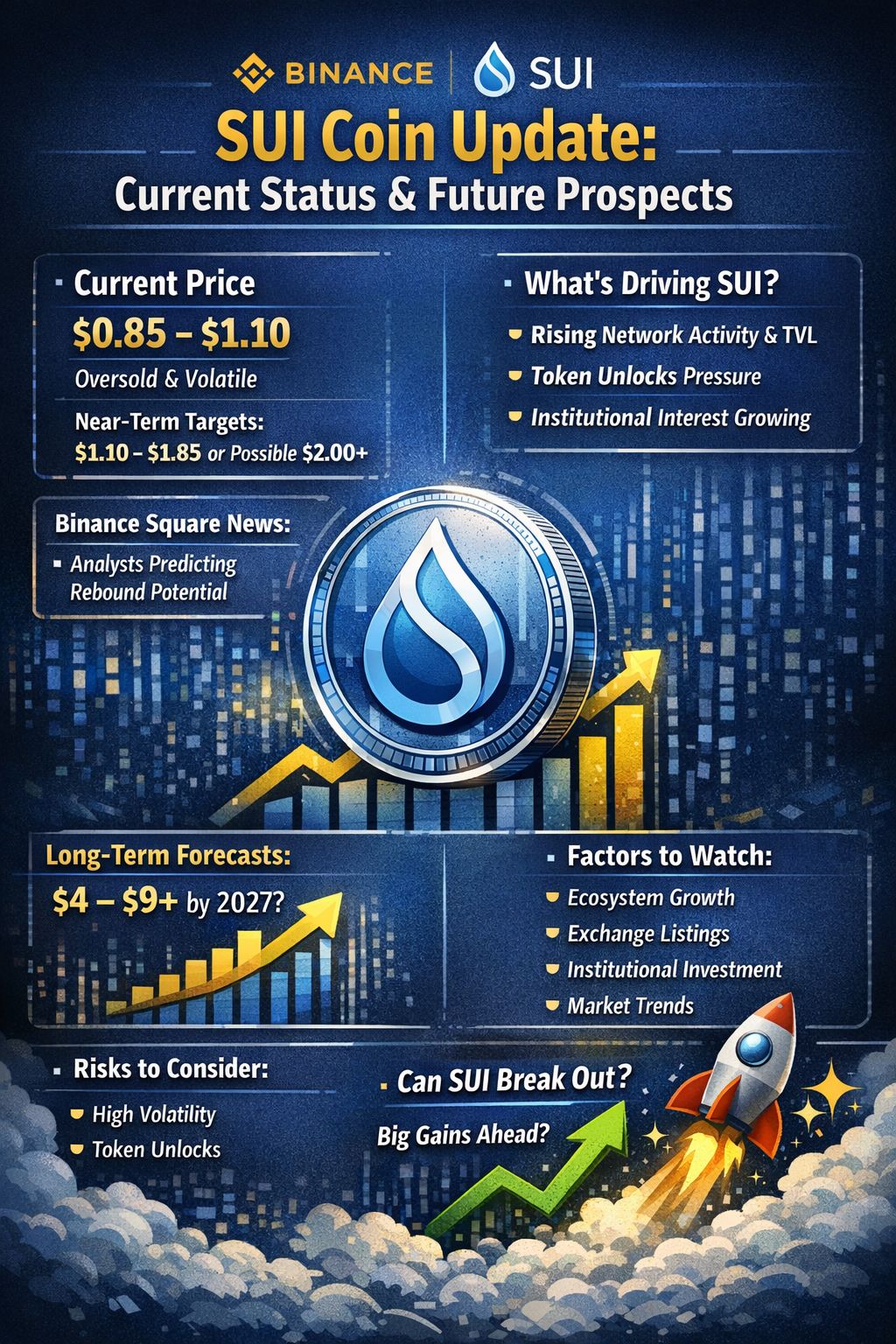 SUI’s current price action is weak but technically oversold, with some analysts expecting a rebound toward $1–$2 in the short term. Institutional interest and ecosystem growth are positives that support future potential, but clear catalysts like ETFs or major adoption would be needed for sustained rallies. Long-term forecasts vary widely, and risk remains high.