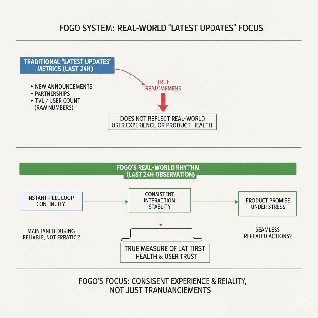 When individuals request "latest updates" or "updates from the last 24 hours," I prefer not to convey false certainty or fabricate events. The most genuine approach to convey a sense of novelty is to center it around the observable dynamics of the project's real-world rhythm. In a latency-first chain such as Fogo, the significant daily narrative extends beyond a mere list of announcements. The evaluation focuses on the continuity of a smooth experience as attention shifts, the stability of usage during peak hours, and the reliability of the product promise under less favourable conditions.