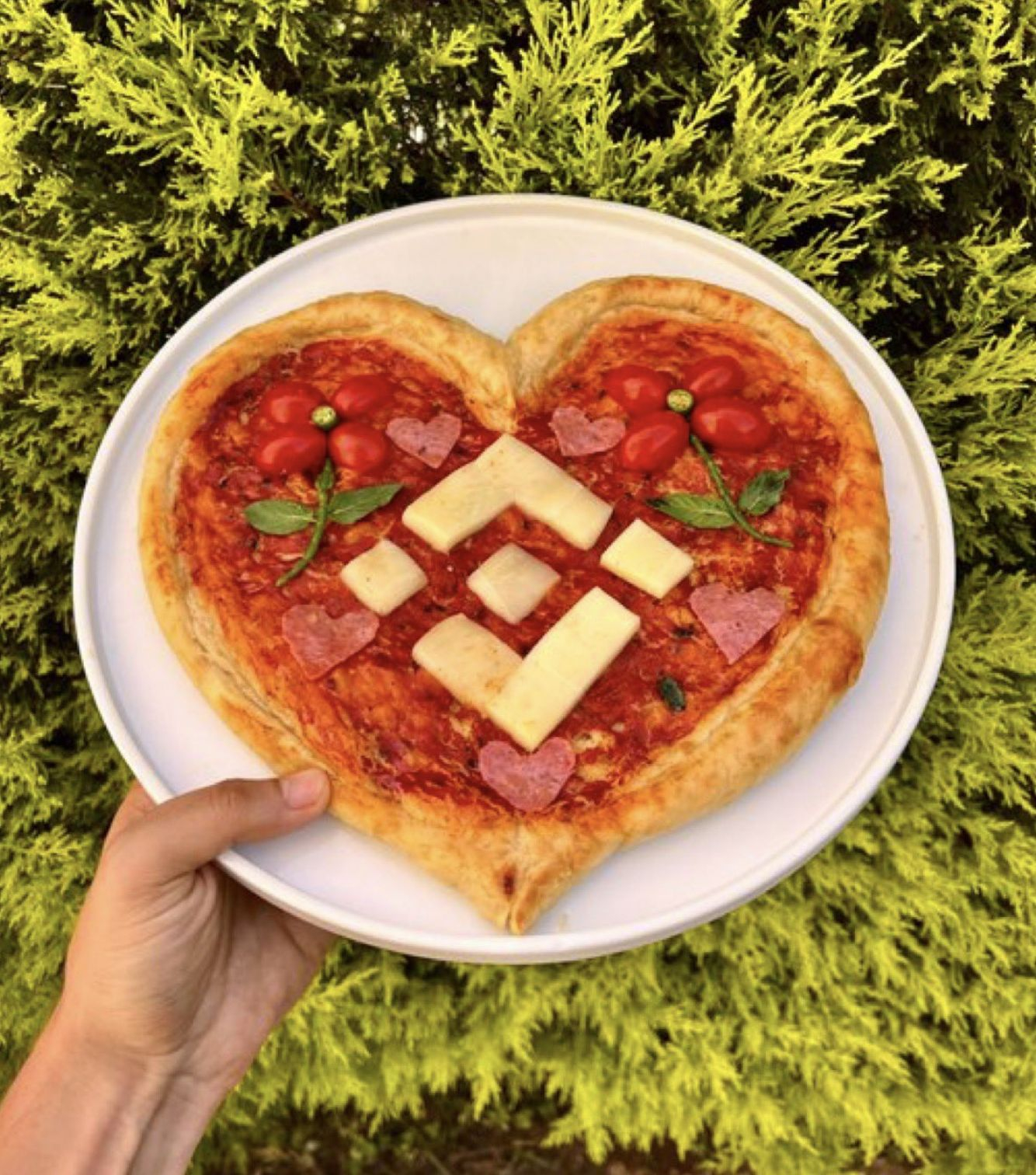 Looking at this heart shaped pizza with the Binance symbol in the center, I realized something:
