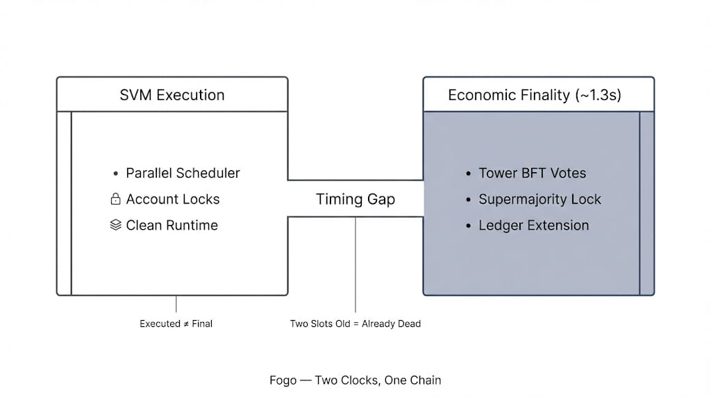 And the SVM runtime on @Fogo Official still does its part. Parallel scheduler. Account locks. Clean execution. None of that helps if your tx hit a slot late.