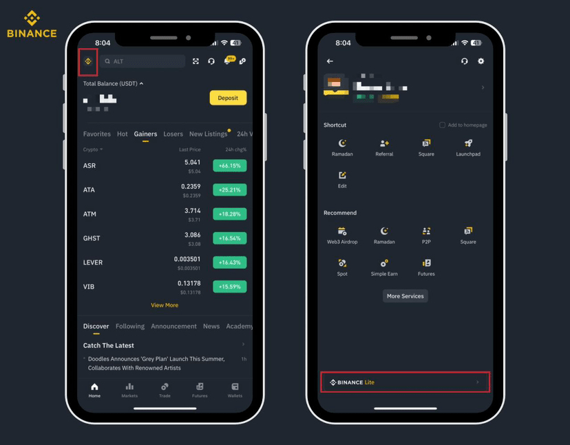 Tap on the top left corner of your home screen, you’ll see Binance Lite written at the bottom