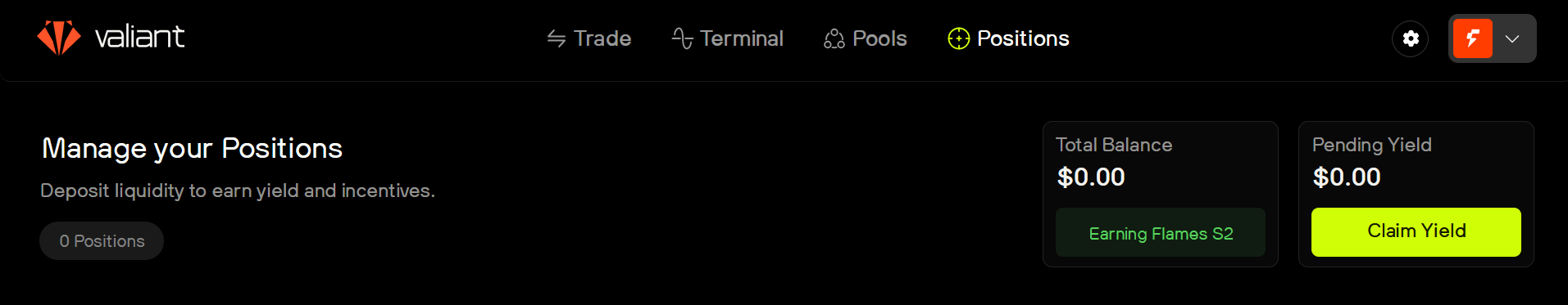 Here is the Flames dashboard, proof that participation is rewarded. You can see the "Earning Flames S2" badge and the claim button waiting for yield.