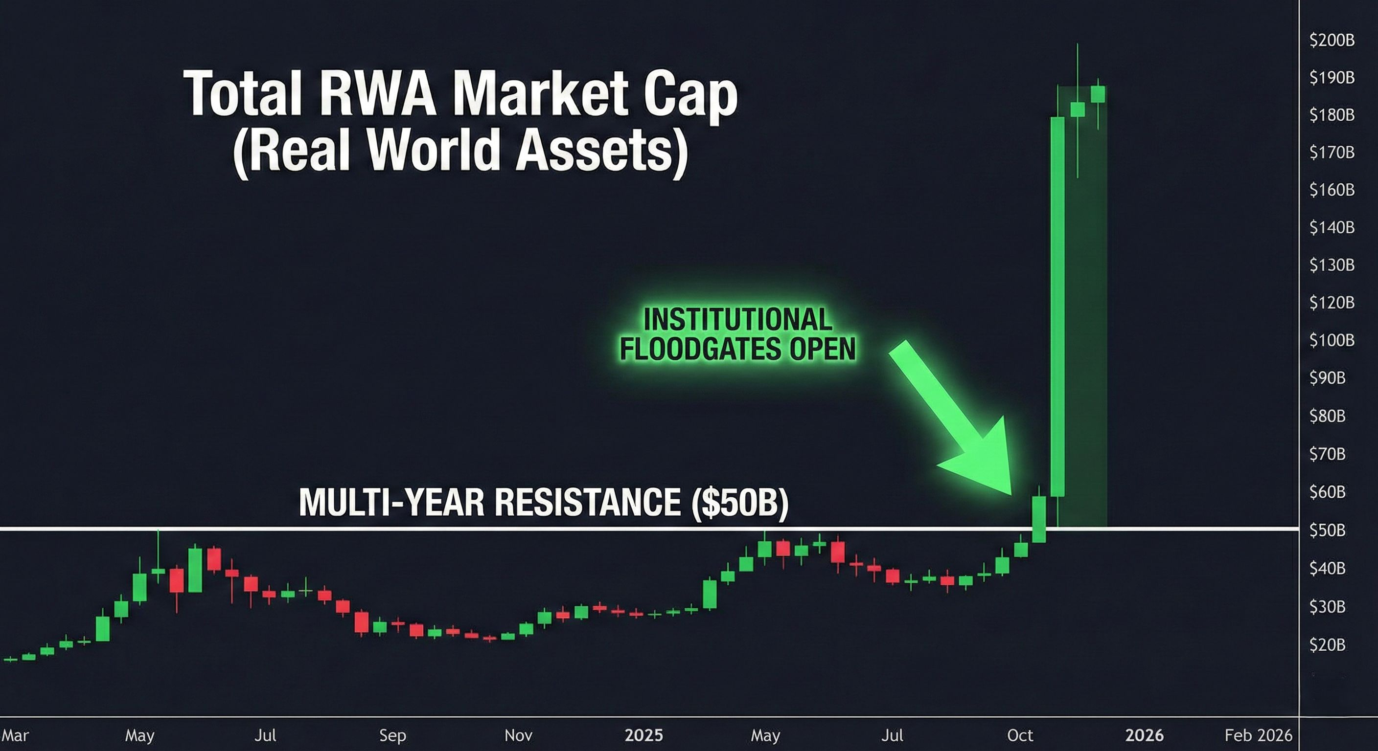 The total market capitalization of the RWA sector has been in a multi-year accumulation phase, coiling tightly under key resistance. That resistance has just been shattered.