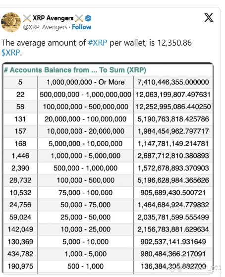 A fresh breakdown of XRP wallet balances (shared Sept. 28 by @XRP_Avengers) sheds light on how XRP holdings are spread across millions of accounts.