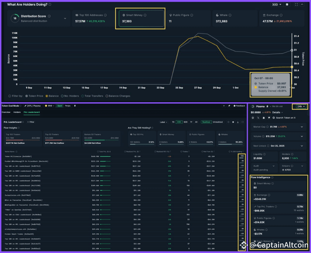 At writing, the Plasma pump looks more like a technical bounce than the start of a new rally. The fundamentals are solid, but no re-entry from smart money implies the move can fade unless new buyers come in.