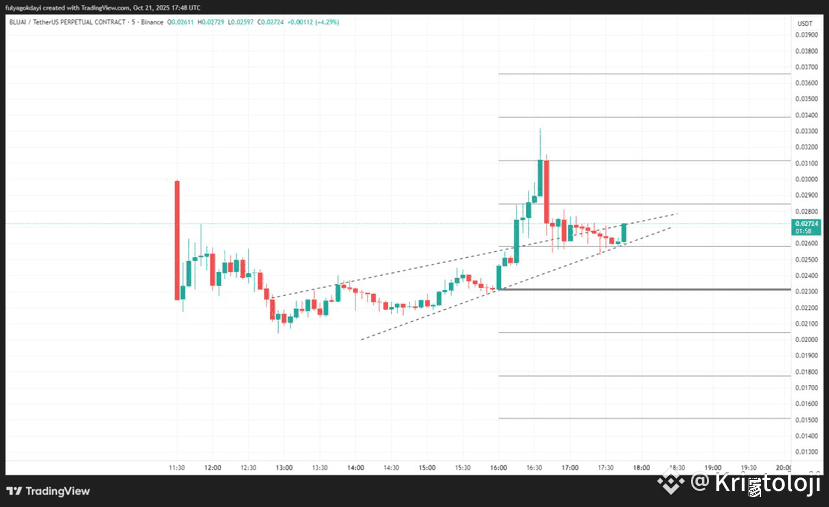 is currently trading around 0.0272 and consolidating within a rising wedge pattern. The key resistance lies between 0.0285–0.0290, while 0.0240 serves as the main support. A breakout with increased volume could target the 0.031–0.033 zone, but a downside break may trigger a pullback toward 0.024.