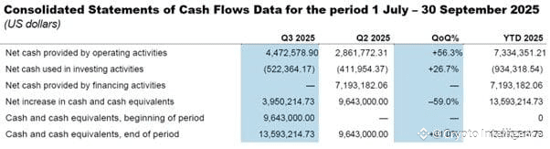 Ending cash and cash equivalents of US $13,593,214.73, underlining liquidity strength ahead of its planned offering.