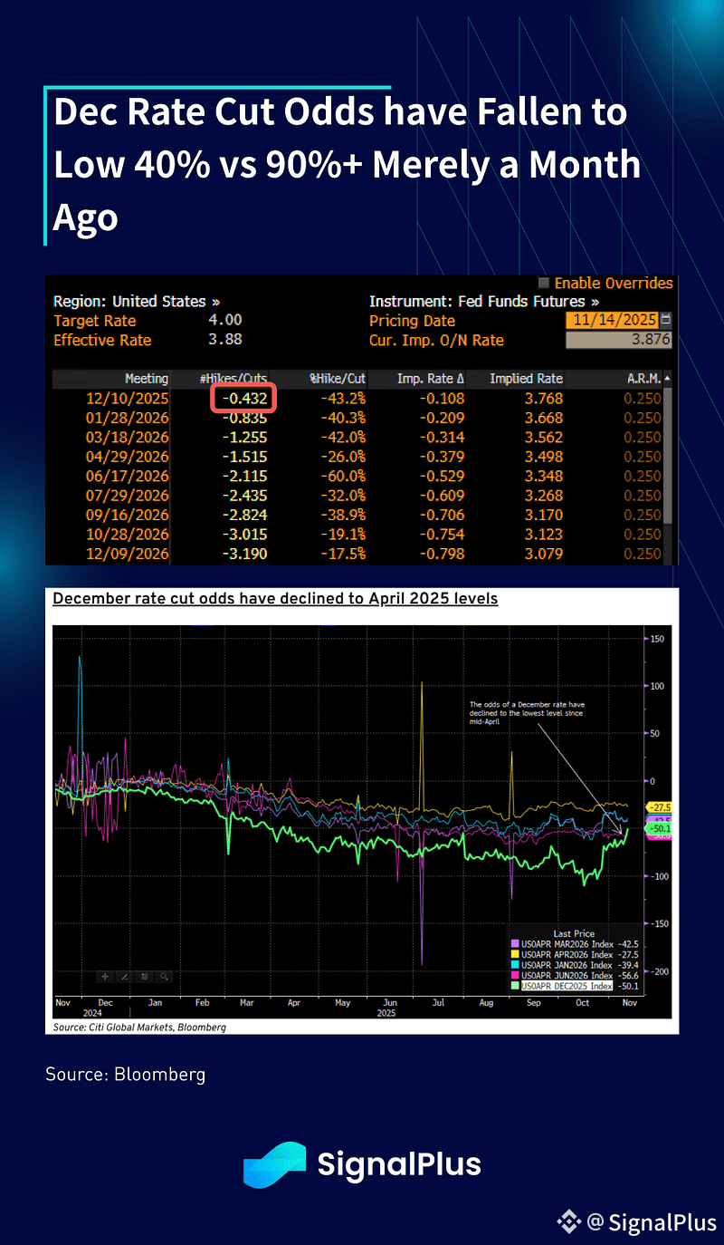 Over in the US, December rate cut odds have fallen towards 40% as Fed officials have been coming out in force to manage down easing spectations, with the US economy still largely holding in despite some concerns over the labour market. The biggest worry remains with inflation, where President Trump has recently suffered a significant setback in polls given high inflation and rising cost of living concerns, with former Treasury Secretary and Fed Chair Yellen declaring that the US is “in danger of becoming a banana republic”.